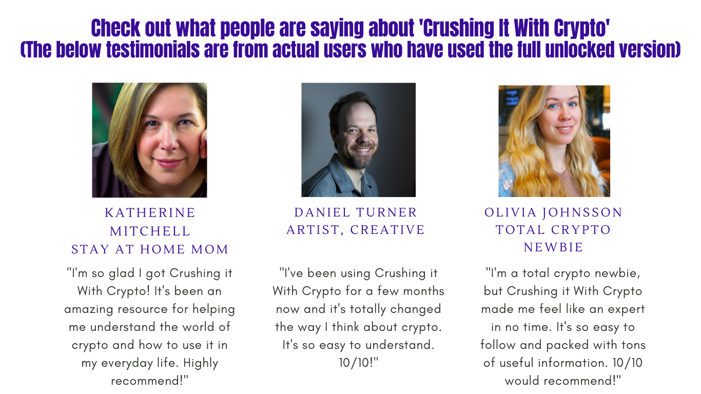 * Once you have jumped into Crushing It with Crypto, you can then use what you have learned over and over again.